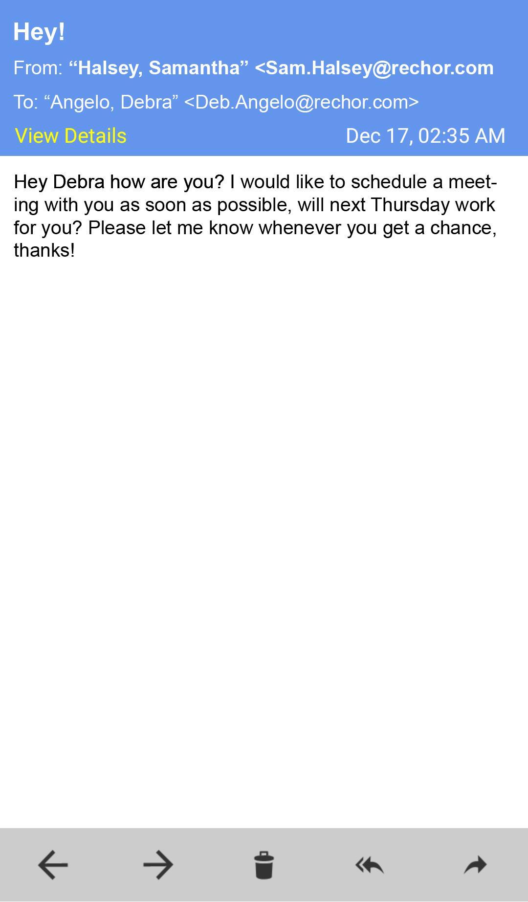 Recursos de email: os 100 e-mails mais recentes são buscados para visualização, visualizador HTML, Anexamento (Word, Excel, Power Point, PDF, etc.) Integração do Visualizador com escritório rápido, pastas e sub-foldes, pastas locais (caixa de desvendos, mancais enviados, rascunhos, arquivos), compõem, respondem a todos, Mensagens para a frente, mensagens rápidas, emails.